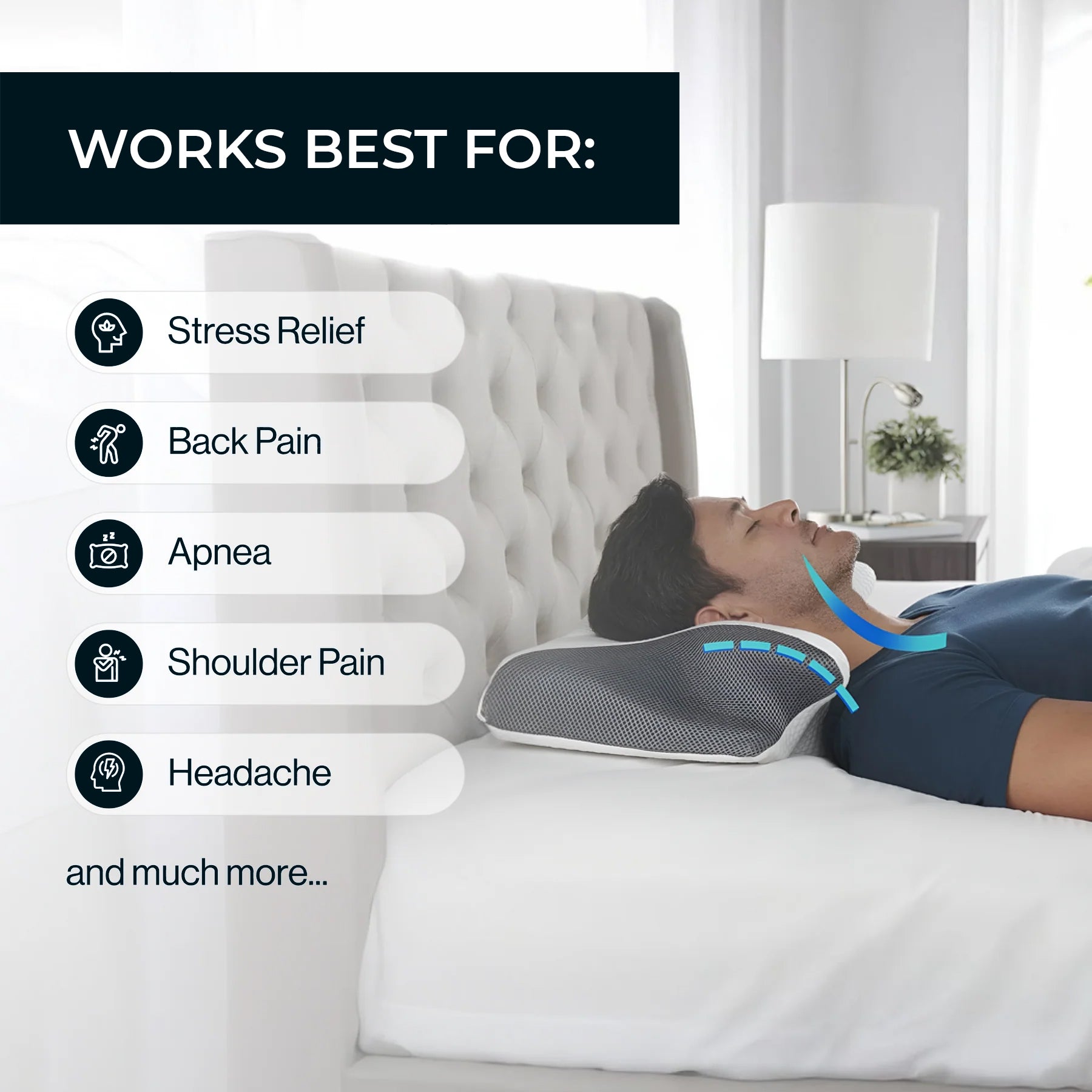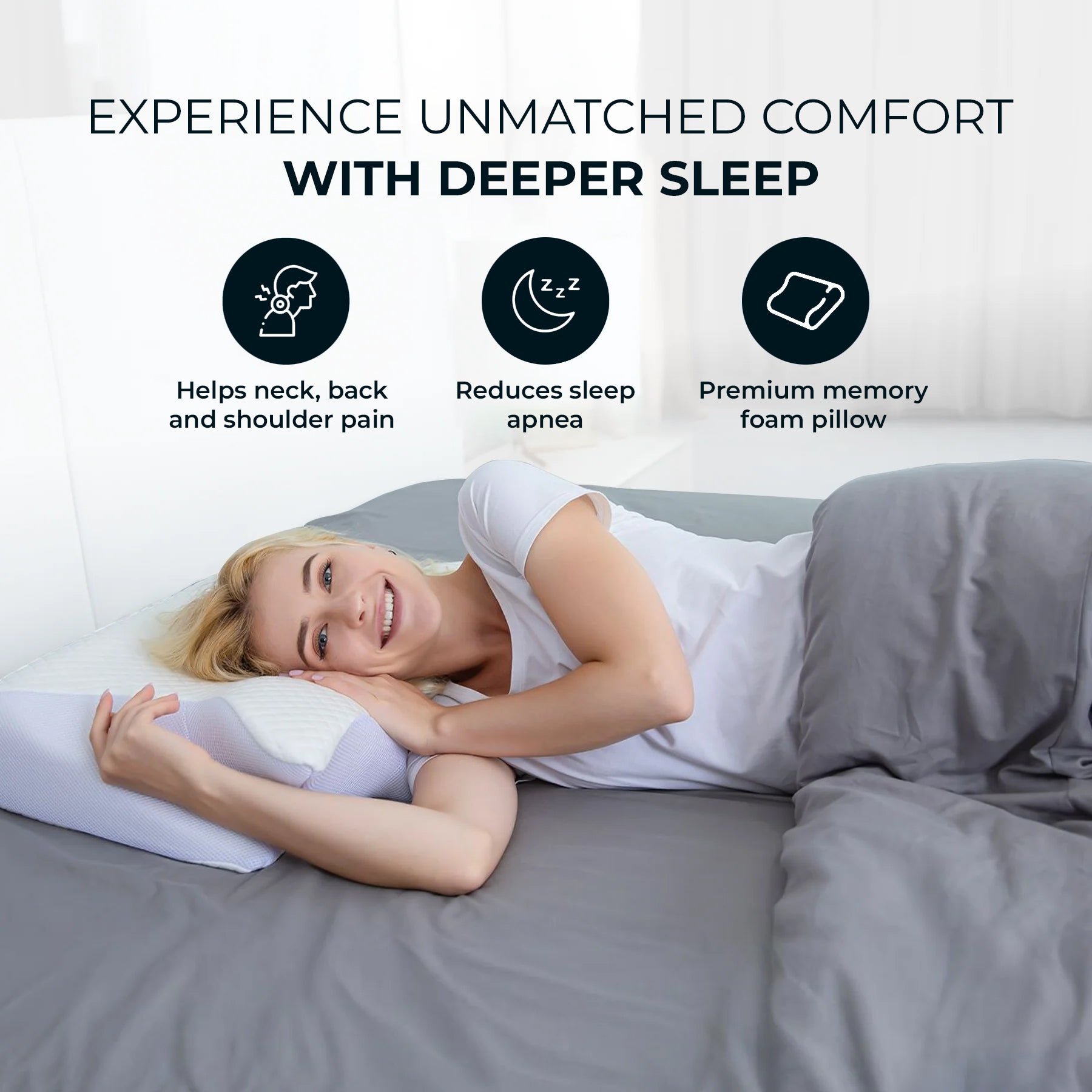 Designed to keep your spine aligned, reduce pressure points, and relieve neck pain. Ensuring deeper, more restorative sleep and better posture.