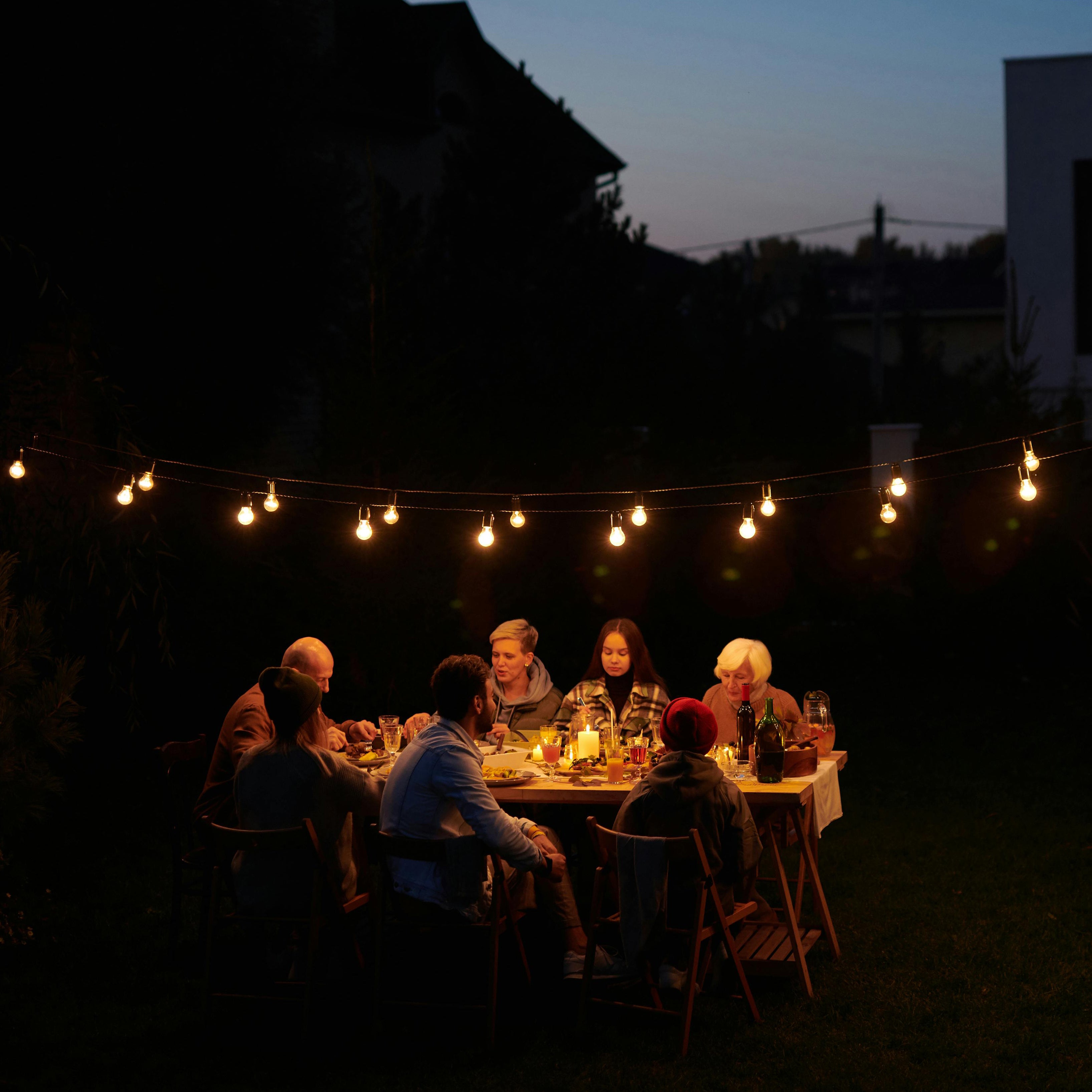 Bright enough to see your dinner. Soft enough to feel the vibe. 21 warm LEDs across 10 meters not floodlights, not flashlights. Just the perfect glow for food, friends, and no complaints.