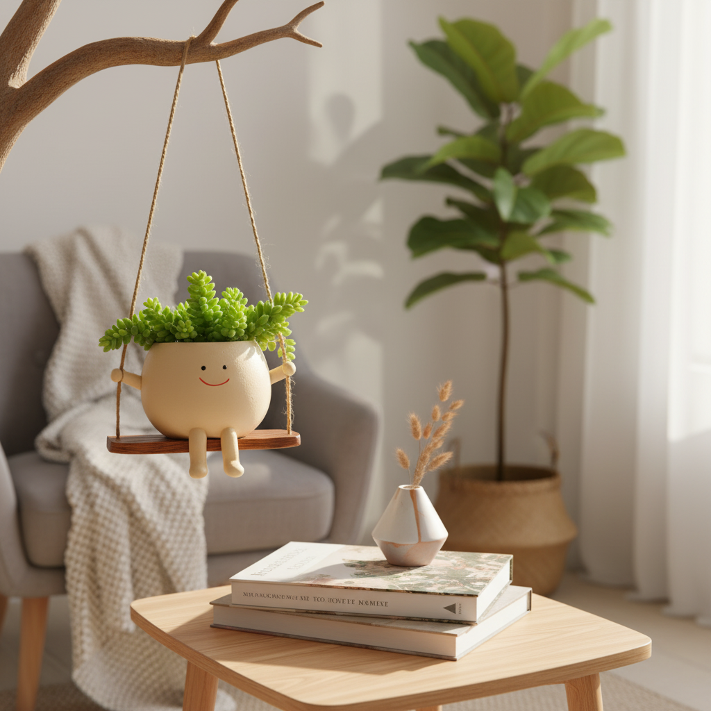 This swinging smiley planter turns boring greenery into the funniest roommate you’ll ever have. 🌱