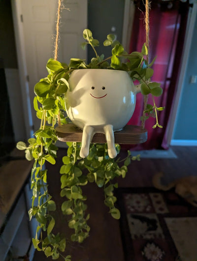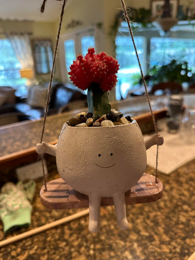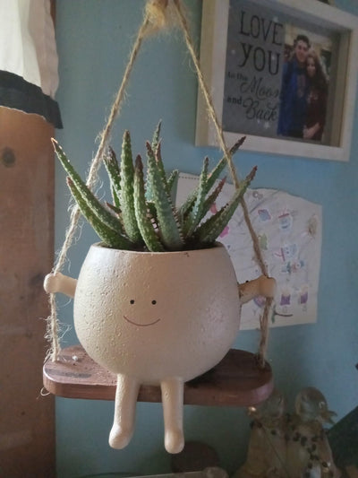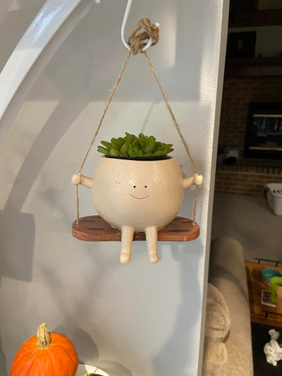 Kara B. JUL 06, 2025Verified BuyerI can’t stop smiling every time I see this planter! I put a little succulent in it and now it looks like he has spiky hair. The material feels solid, and the tiny swing rope is surprisingly sturdy. Thinking of ordering a few more as gifts!