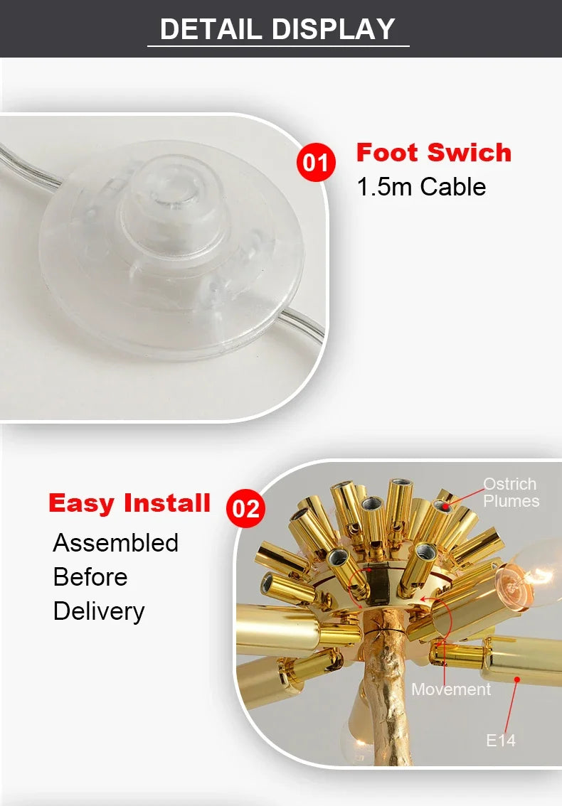 The actual picture of feather floor lamp turn on and turn off lights effect is as follows: