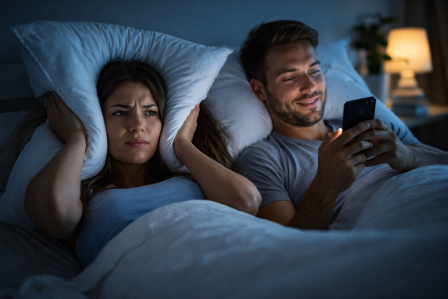 One partner needs audio to drift off, but the sound leakage keeps the other wide awake.